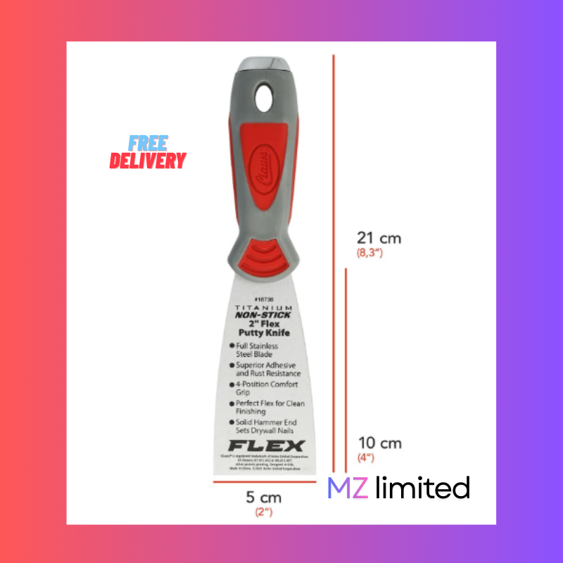 Clauss 2” Putty Knife – Flexible Titanium Blade, Non-Stick, Ergonomic Handle for Home Repairs & Touch-UpsClauss 2” Putty Knife – Flexible Titanium Blade, Non-Stick, Ergonomic Handle for Home Repairs & Touch-Ups